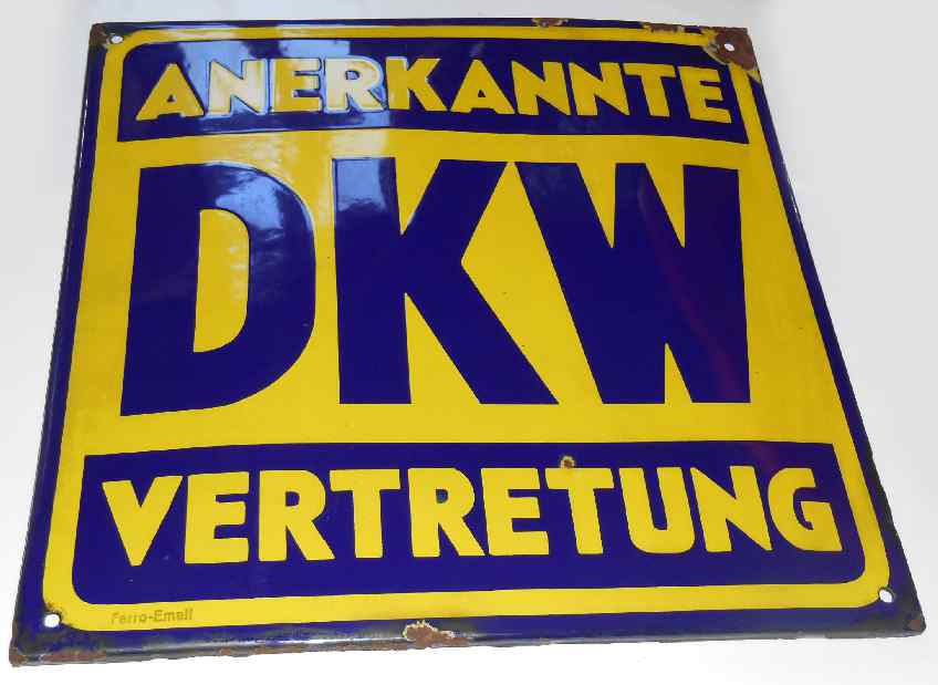 Berliner Verkehrsschilder um 1930 in dicker schablonierter Emaille und sehr gutem Zustand. Der Motorradfahrer sieht aus wie ein D Rad und das Auto wie ein DKW.