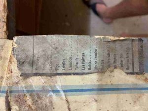 Und siehe da auch hier hatte jemand die Blechschere angesetzt und quasi die Fläche auf dem die Fahrpläne angeklebt wurden abgetrennt. Bis auf ein kleines Stück, dass die Reiseziele noch offenbarte: