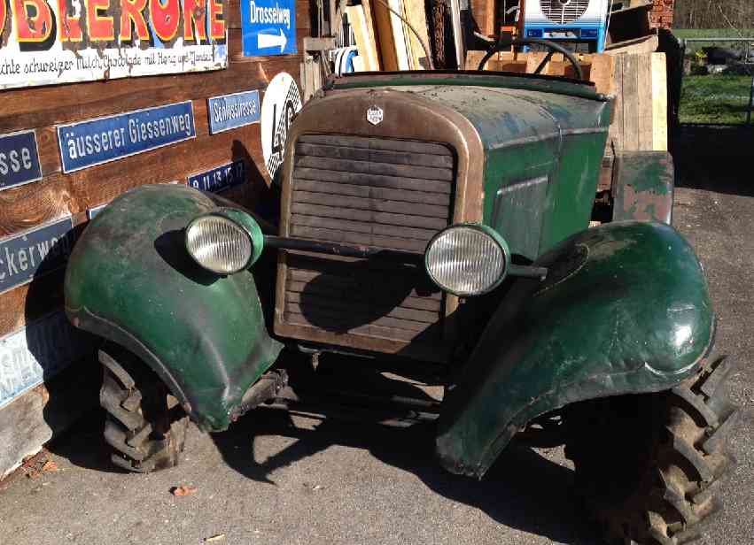 nach dem ersten weltkrieg als das material viel wert war wurden hier bei uns sehr viele abbruchautos zu autotraktoren umgebaut, da wurden wieder verwendbare teile umgebaut aus 1-2-3-4 autos ein traktor gebaut, nach den infos des vorbesitzers könnte es ein uhrbührer traktor sein, da bevor er bührer baute baute er aus diesen automarken solche traktoren….
